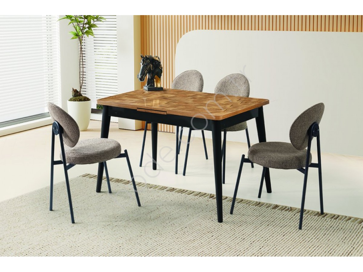 2122+9203 POLO 75*120+30 CM BÜYÜYEN MASA SİYAH CEVİZ PARKE DESEN MASA