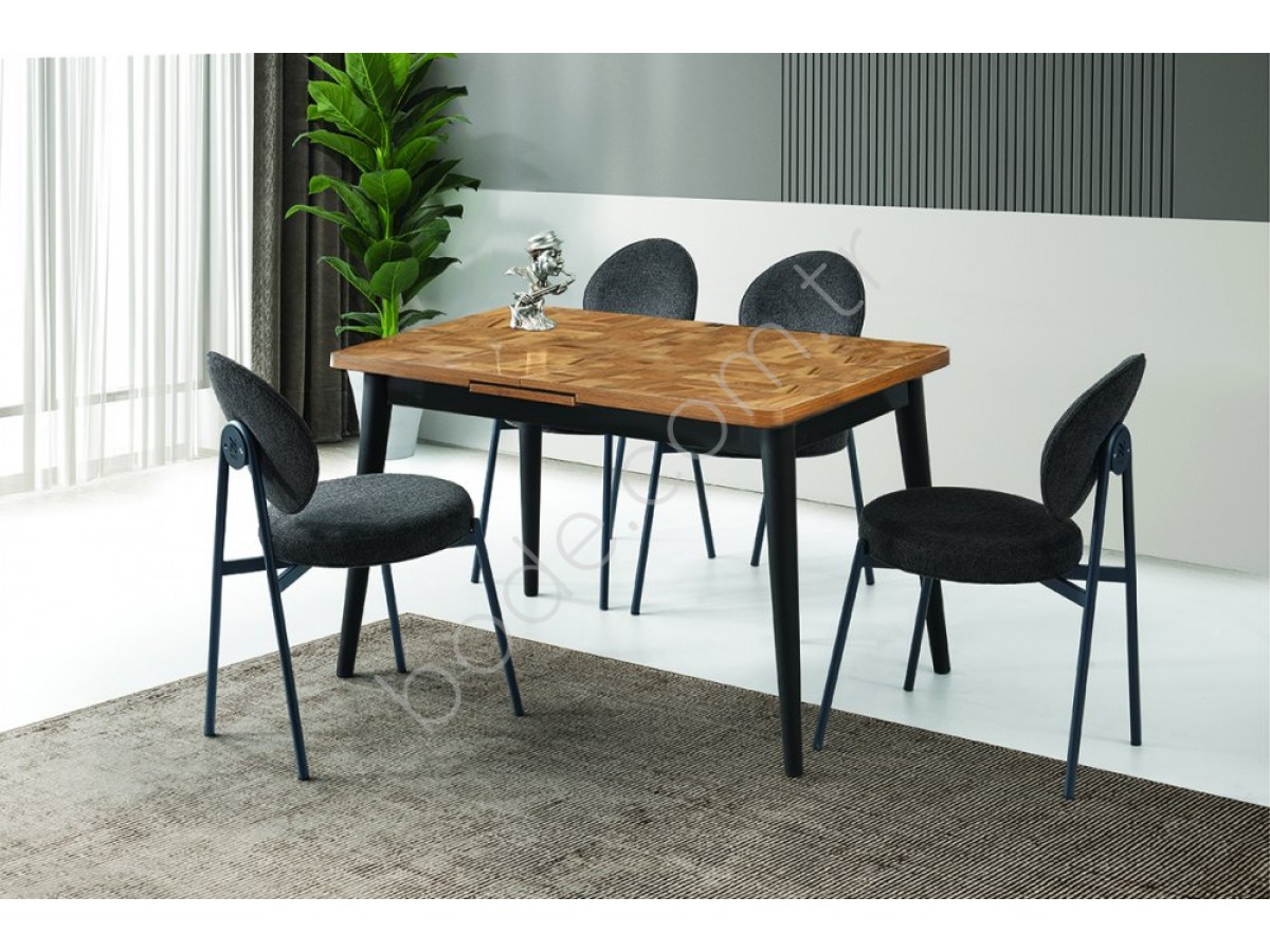 2122+9203 POLO 75*120+30 CM BÜYÜYEN MASA SİYAH CEVİZ PARKE DESEN MASA
