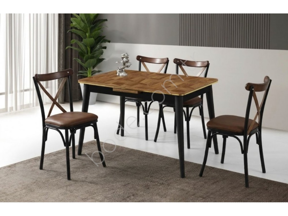 2122+9203 POLO 75*120+30 CM BÜYÜYEN MASA SİYAH CEVİZ PARKE DESEN MASA