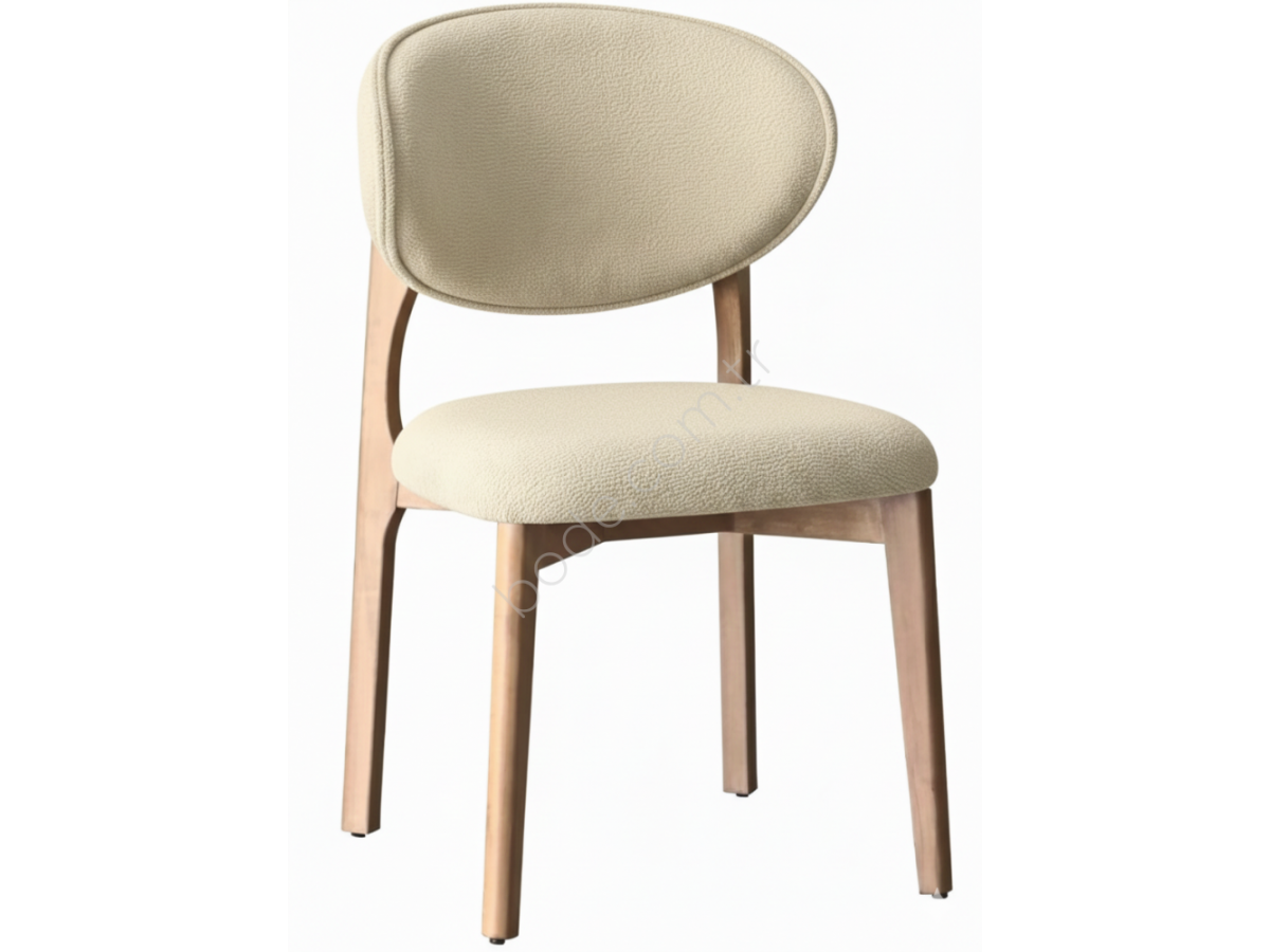 2202 ELİPS KREM KUMAŞ DÖŞEME CEVİZ AHŞAP İSKELET SALON SANDALYE