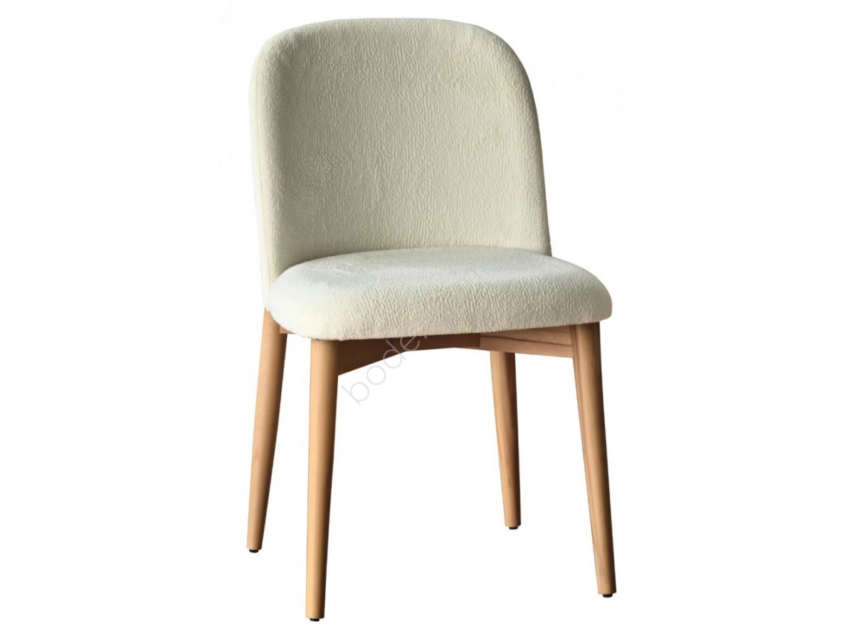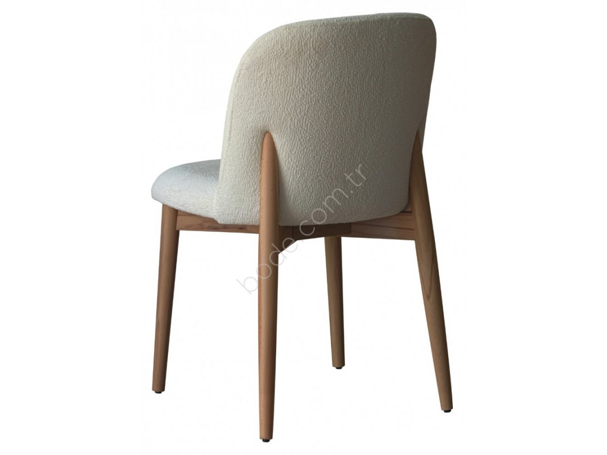 2203 İKONİK KREM KUMAŞ DÖŞEME KAHVE AHŞAP İSKELET SALON SANDALYE
