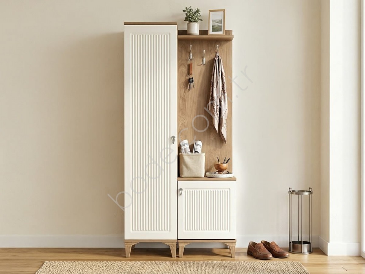 3161 ELMAS MEBRAN KAPAKLI %100 MDF PANEL ASKILI BLOK CEVİZ AYTAŞI PORTMANTO
