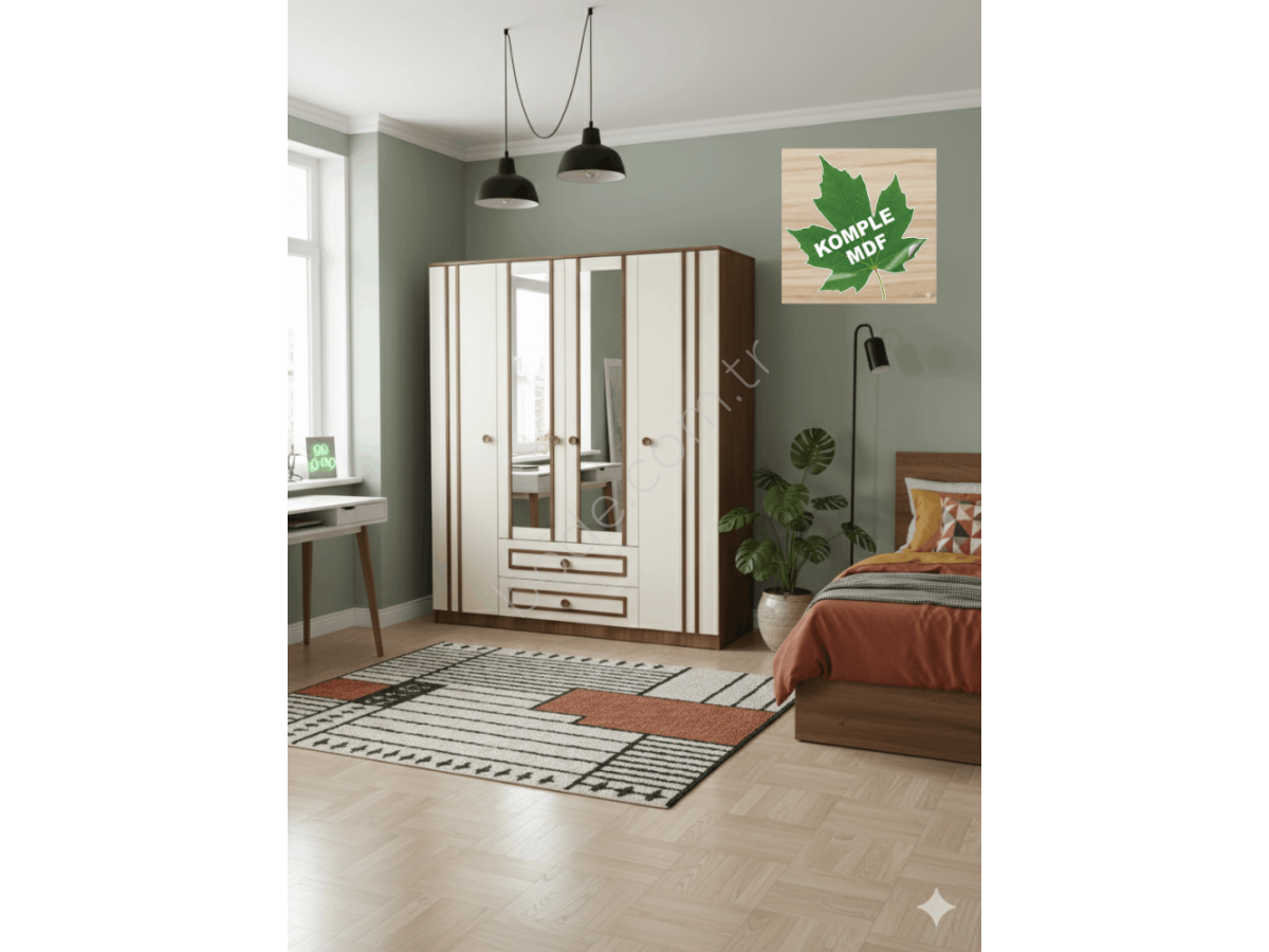 4114 SAHRA MDF 4 KAPILI CEVİZ AYTAŞI GARDOLAP EBAT E 180/D 58 /Y 210