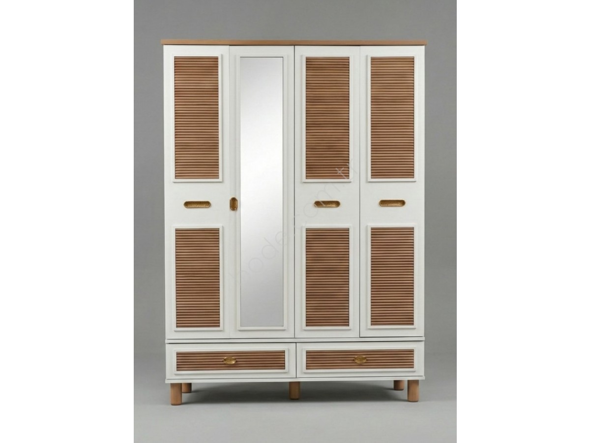 4202 MİLA STOR 4 KAPILI AYTAŞI CEVİZ RENK KOMPLE MDF AYNALI KAPAKLI ALTTA 2 ÇEKMECELİ GARDOLAP