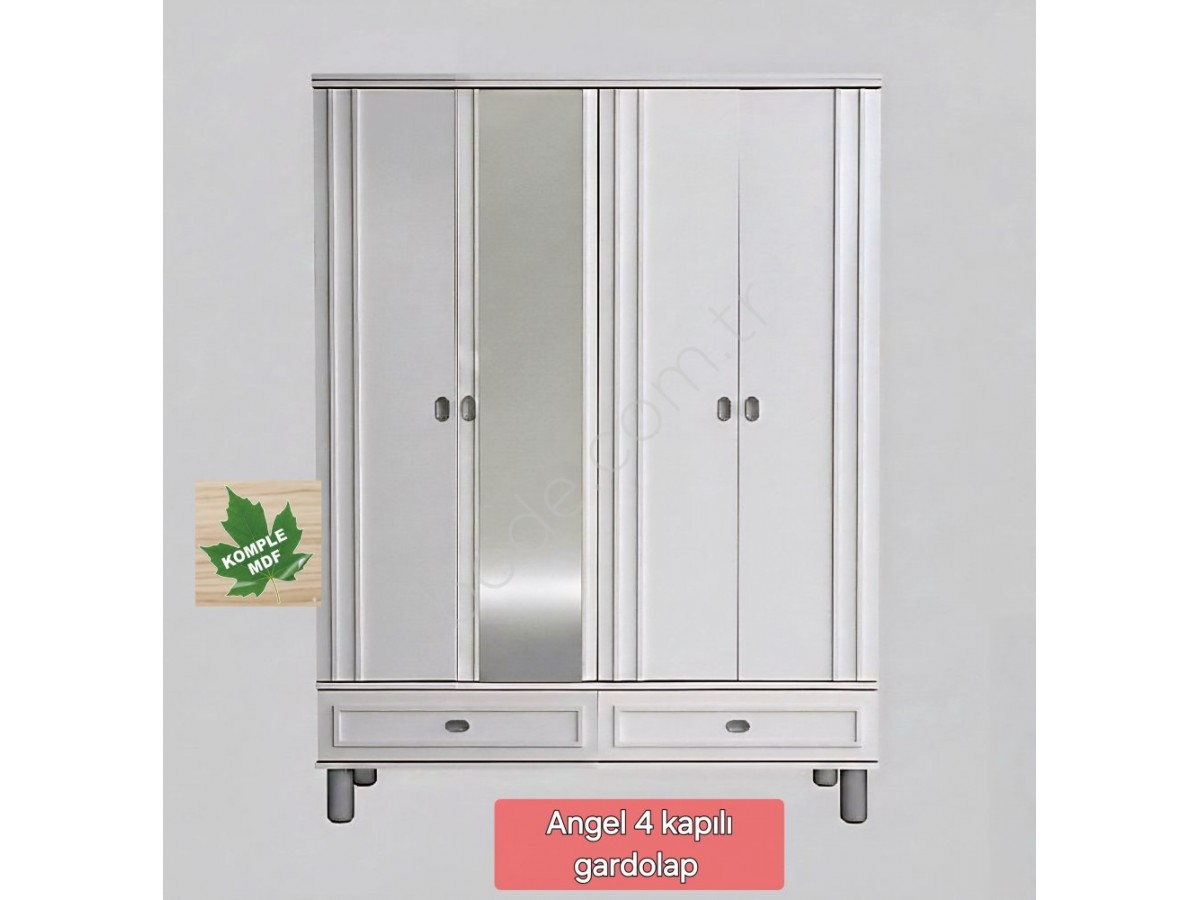 4205 4 KAPILI AYTAŞI RENK KOMPLE MDF AYNALI KAPAKLI ALTTA 2 ÇEKMECELİ GARDOLAP