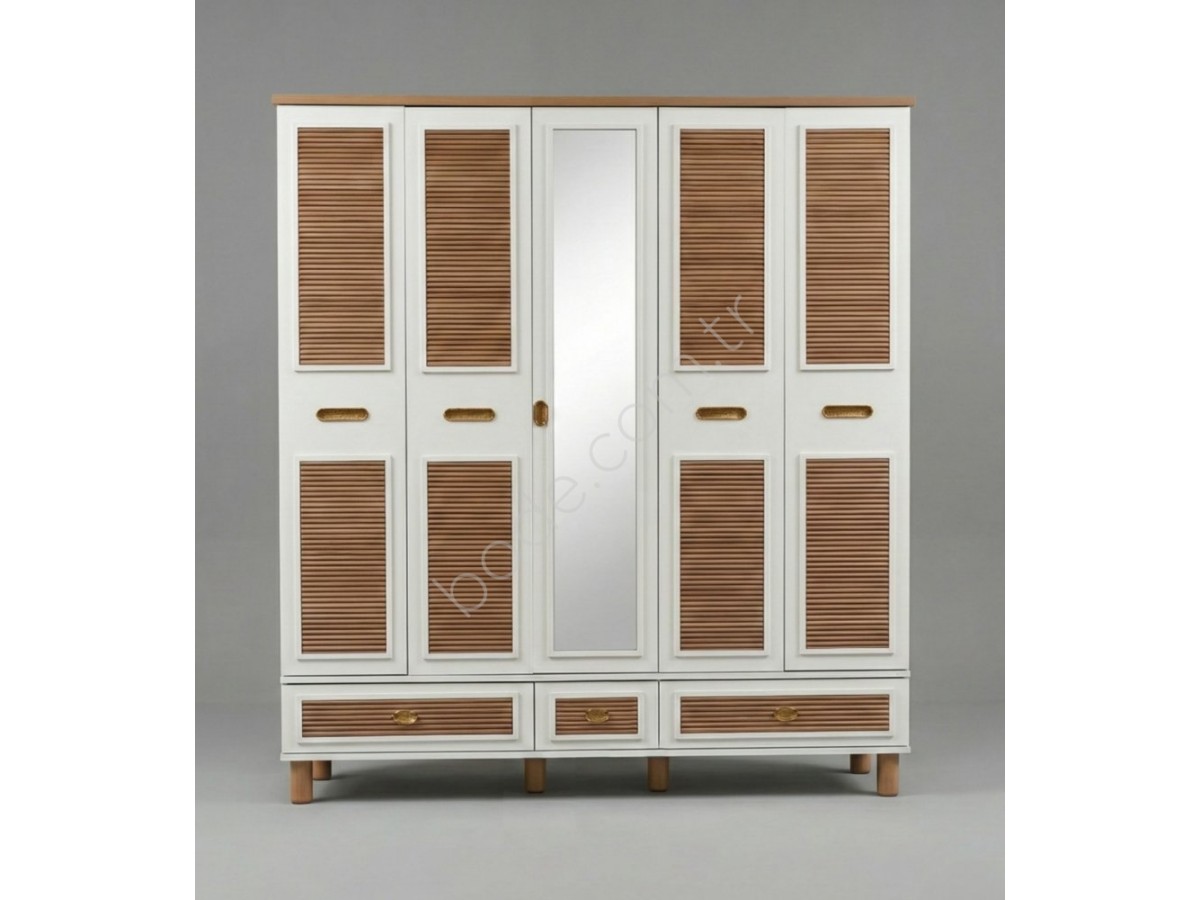 5202 MİLA STOR 4 KAPILI AYTAŞI CEVİZ RENK KOMPLE MDF AYNALI KAPAKLI ALTTA 3 ÇEKMECELİ GARDOLAP