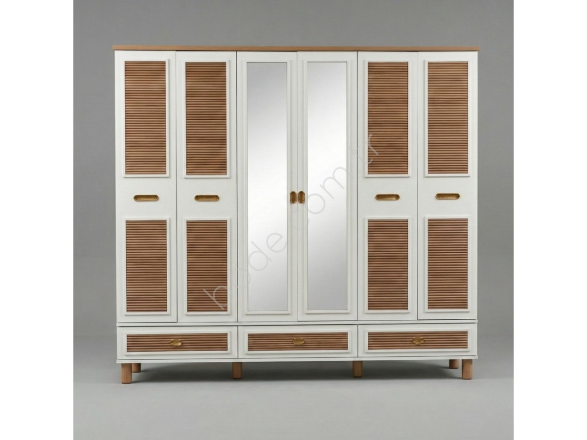 6202 MİLA STOR 6 KAPILI AYTAŞI CEVİZ RENK KOMPLE MDF AYNALI KAPAKLI ALTTA 3 ÇEKMECELİ GARDOLAP