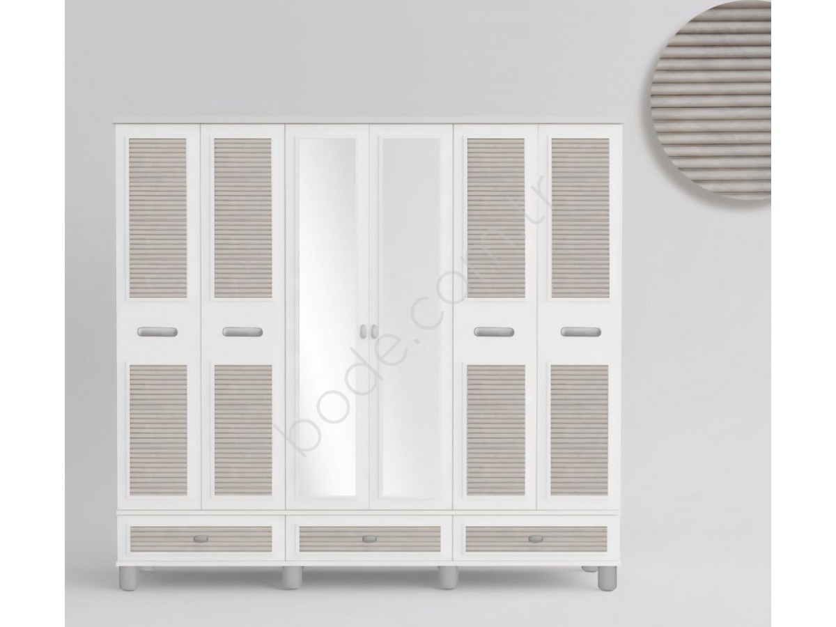 6202 MİLA STOR 6 KAPILI AYTAŞI RENK KOMPLE MDF AYNALI KAPAKLI ALTTA 3 ÇEKMECELİ GARDOLAP