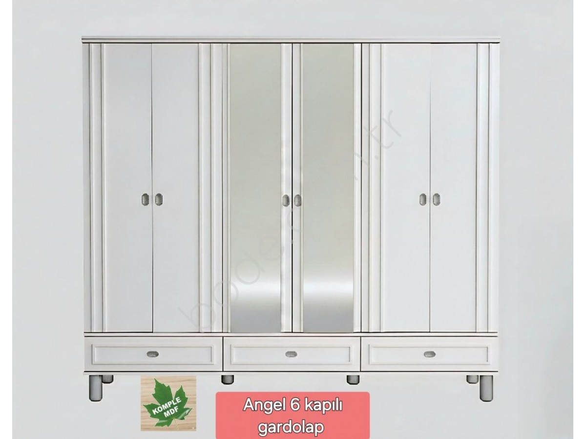 6205 6 KAPILI AYTAŞI RENK KOMPLE MDF AYNALI KAPAKLI ALTTA 3 ÇEKMECELİ GARDOLAP
