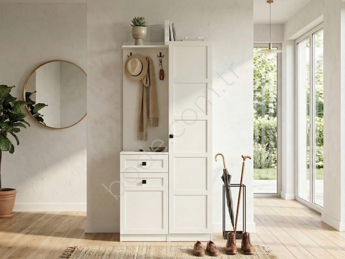 2201 İNCİ ÇAKIL % 100 MDF AYTAŞI RENK 2 BLOKLU ÇEKMECELİ PORTMANTO EBAT E 84 /B 216 /D 38