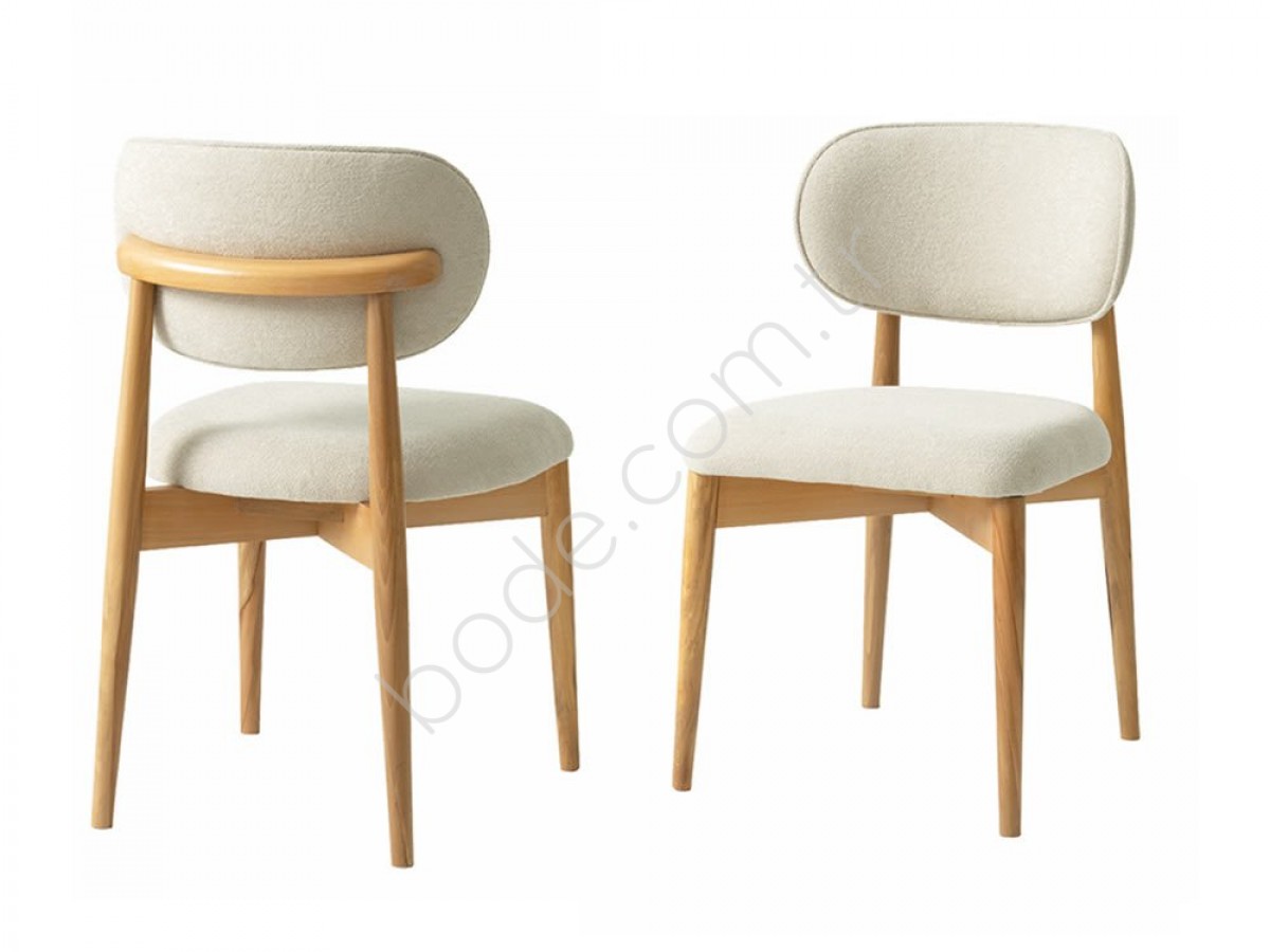 2201 POLO BOHEM KREM KUMAŞ DÖŞEME NATURAL AHŞAP İSKELET SALON SANDALYE