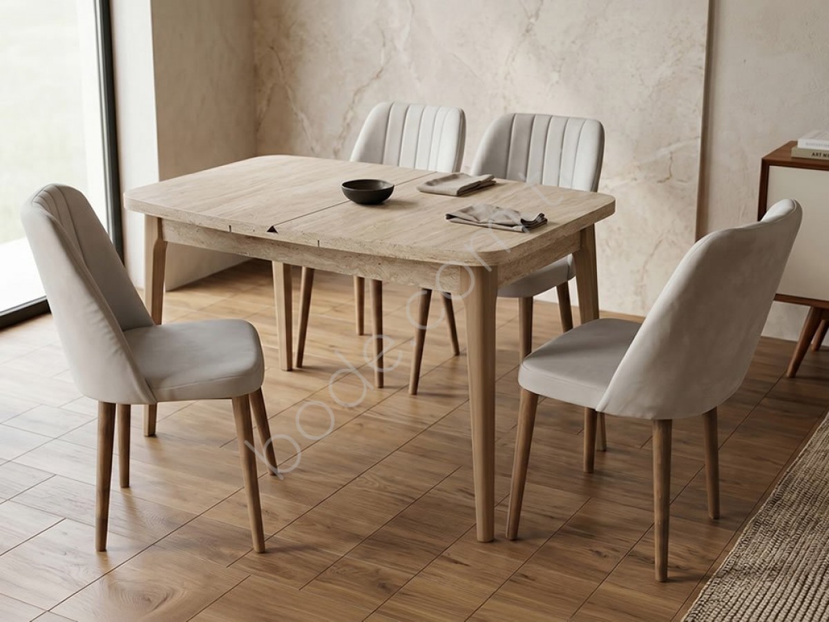 2235 +9203 BABİL TRAVERTEN DESEN TBL MDF 80*130+30 KELEBEK AÇILIR MUTFAK MASA / 1473 DAMLA BABY FACE KREM KUMAŞ DÖŞEMELİ KAHVR AHŞP AYAKLI SAN