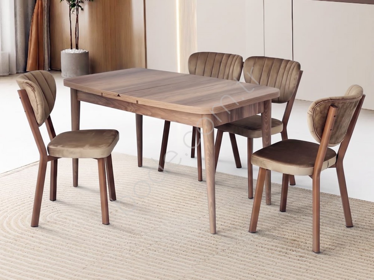2235 +9203 BABİL CEVİZ TBL MDF 80*130+30 KELEBEK AÇILIR MUTFAK MASA / 1473 DAMLA BABY FACE KAHVE KUMAŞ DÖŞEMELİ KAHVE METAL AYAKLI SAN