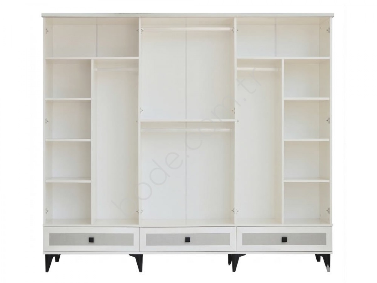 6202 MİLA STOR 6 KAPILI AYTAŞI CEVİZ RENK KOMPLE MDF AYNALI KAPAKLI ALTTA 3 ÇEKMECELİ GARDOLAP