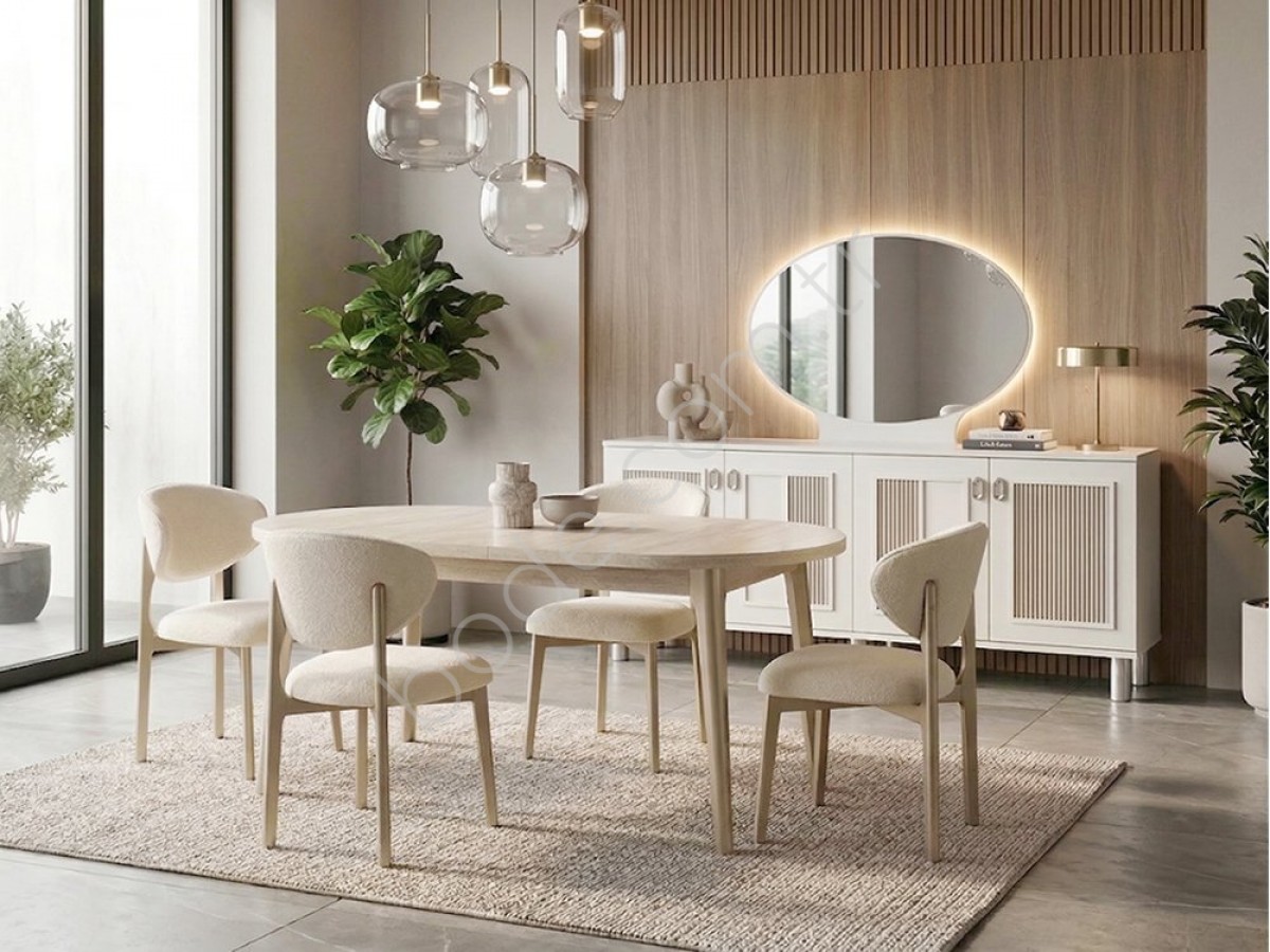 MİLA (180CM KONSL) MDF TRAVERTEN BONJİ YEMEK ODASI TAKIMI